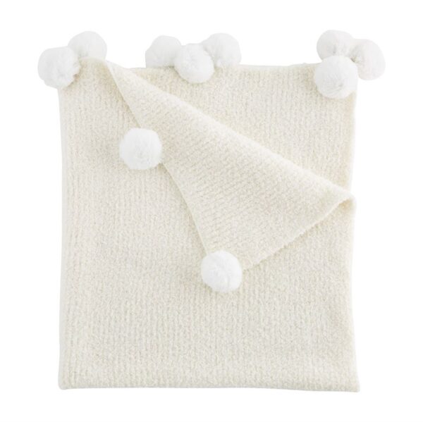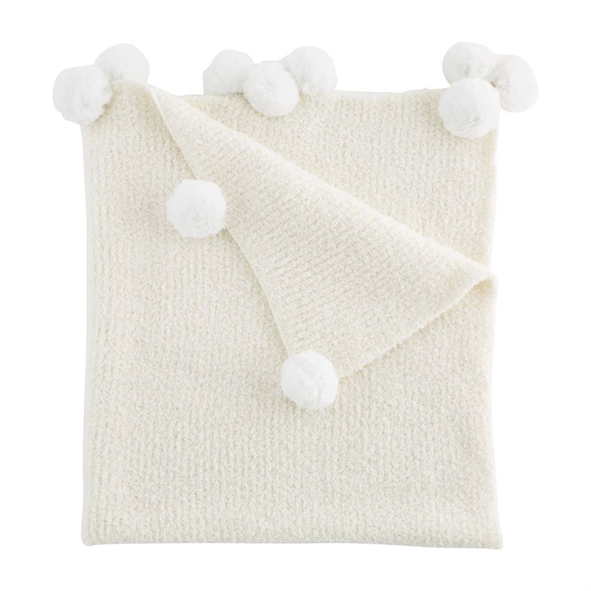 Ribbed chenille blanket features chenille pom-pom trim.