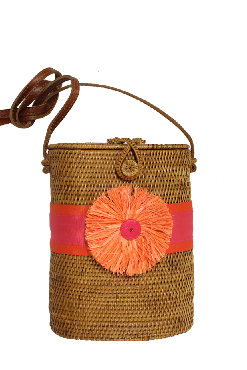 Add a pop of color to your wardrobe with this adorable basket bag with leather shoulder strap.