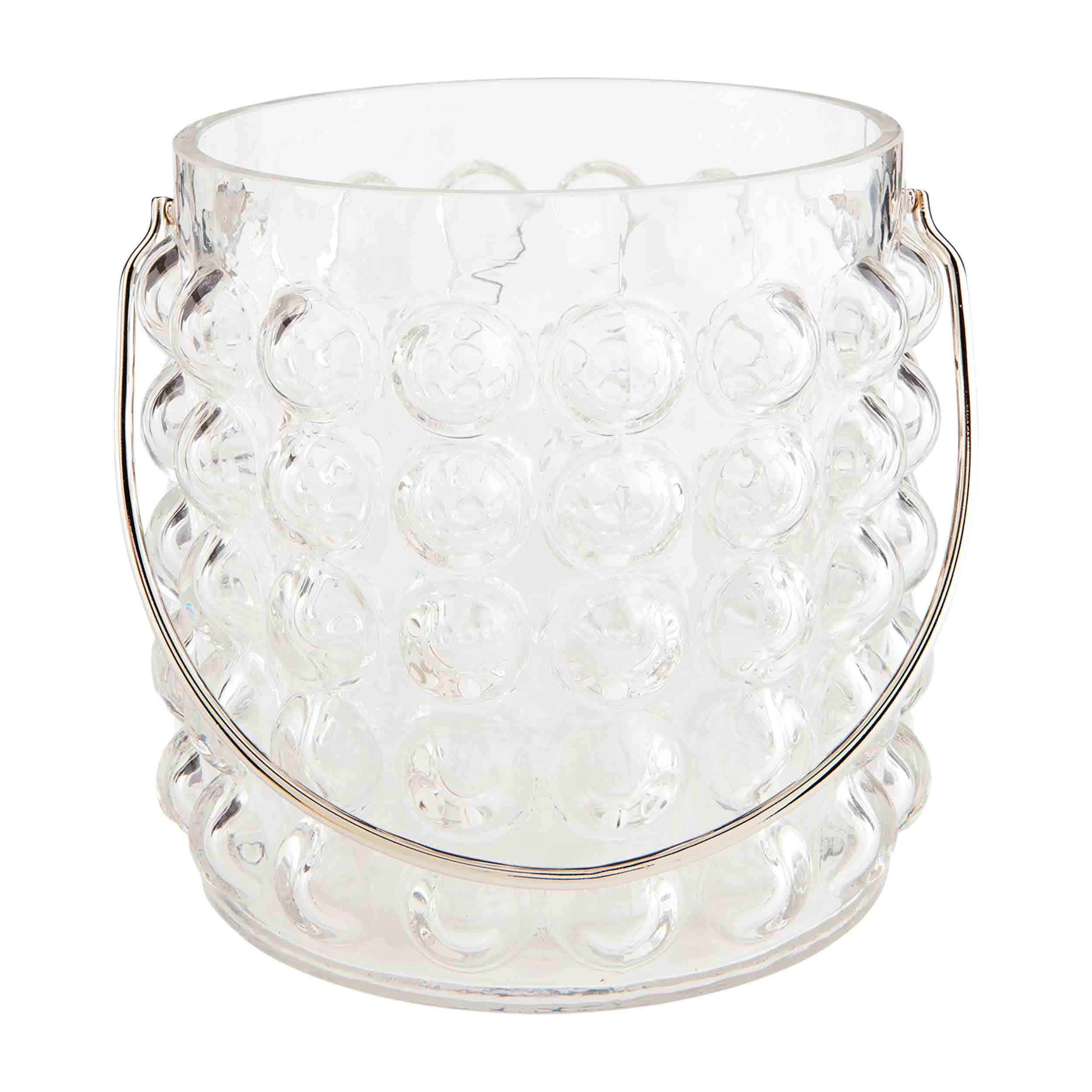 This Hobnail Ice Bucket is the fresh and simple piece that will be right at home on your bar. The hobnail glass ice bucket features a metal handle. This glass ice bucket measures 8″ x 7″ and is a perfect way to display ice at your celebrations. We recommend hand washing this bucket.