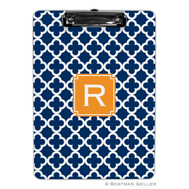 Take notes in style! Perfect for home, school or office. Our two-sided clipboards also make gifts for teachers and coaches. Standard 9×12.5 wooden clipboard. Shown in navy with tangerine accent.