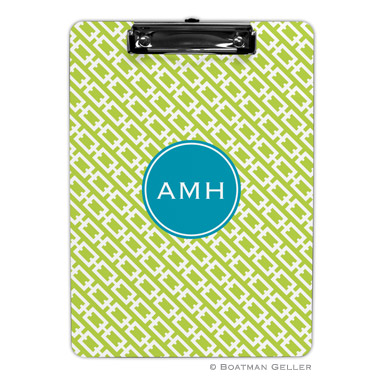 Take notes in style! Perfect for home, school or office. Our two-sided clipboards also make gifts for teachers and coaches. Standard 9×12.5 wooden clipboard. Shown in lime with turquoise accent and white pattern inset.