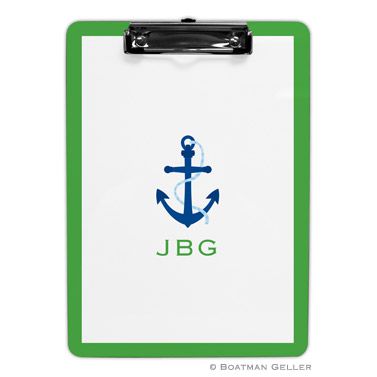 Take notes in style! Perfect for home, school or office. Our two-sided clipboards also make gifts for teachers and coaches. Standard 9×12.5 wooden clipboard. Customize your Clipboard with 100+ icons. Icons available in both color and silhouette styles. Comes with or without color accent border. Shown with kelly border, anchor icon 015, navy initials.