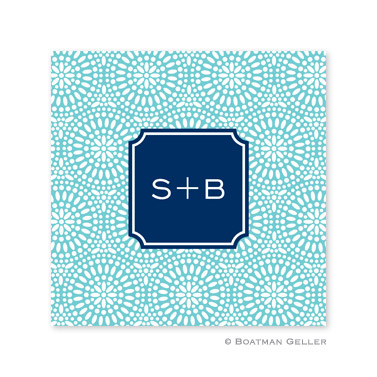 Our personalized paper coasters make a great hostess gift, and are perfect for your own entertaining. 4×4. Set of 50 – $30. Shown in teal with navy accent .
