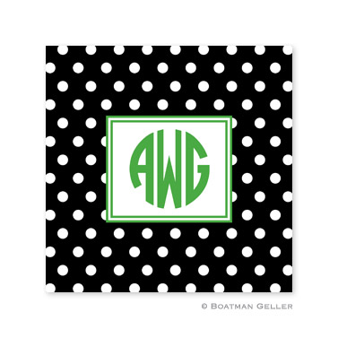 Our personalized paper coasters make a great hostess gift, and are perfect for your own entertaining. 4×4. Set of 50 – $30. Shown in midnight with kelly accent.