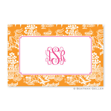Perfect for everyday dining as well as entertaining, from small intimate parties to grandiose events. These bring great style to the table – 11×17. Back side of disposable placemats are not printed. Comes in pad of 25 or 50 sheets. 25 count pad – $25, 50 count pad – $50. Shown in tangerine with bubblegum accent and white pattern inset.
