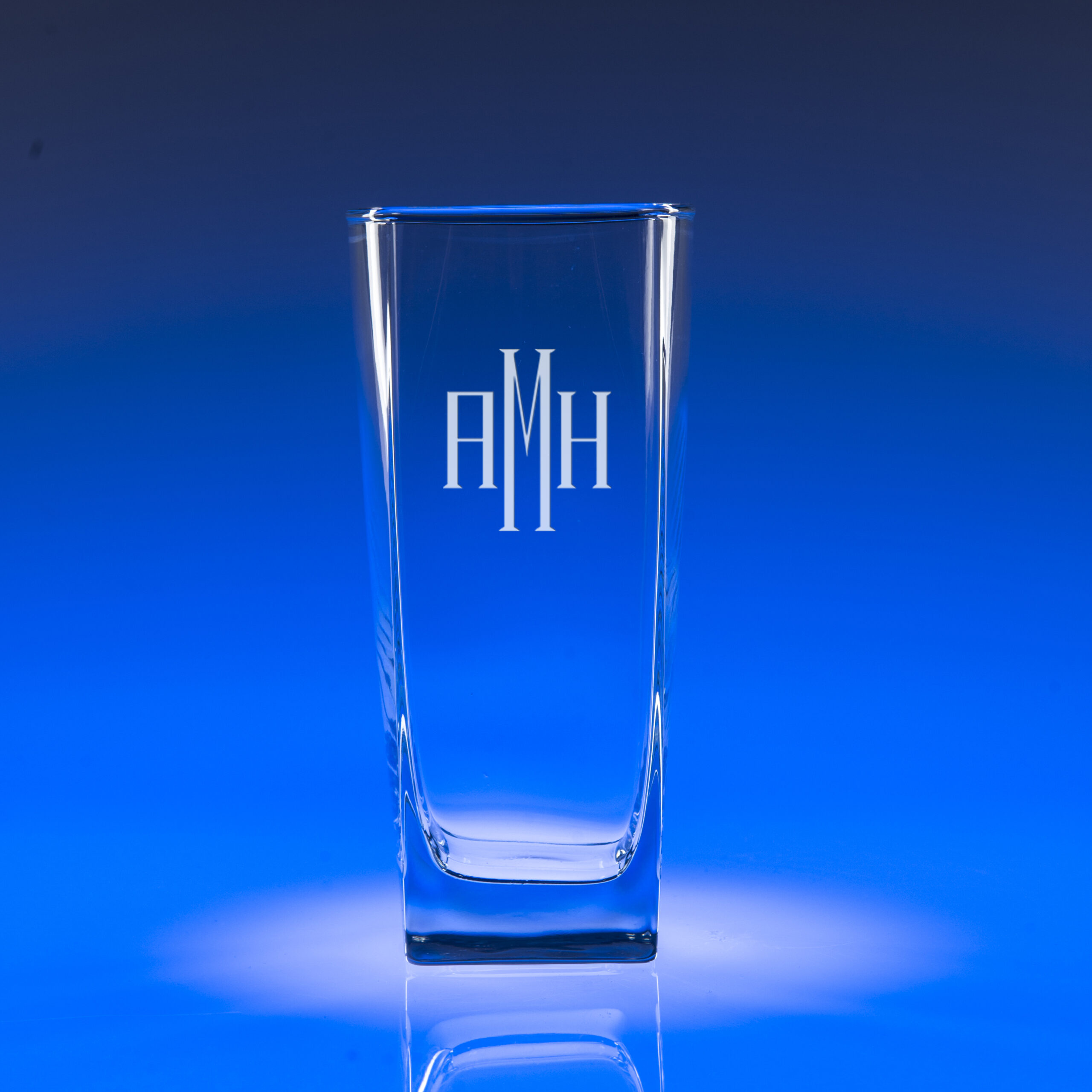6″H x 3″W- 16oz (pictured 2 from left). It’s hip to be square! Geo is a stylish set of barware with a square like twist.It has all the necessities for enjoying your favorite mixer including one’s own personal monogram. A cool asset to the wet bar that will get rave reviews when entertaining or when giving as a gift.