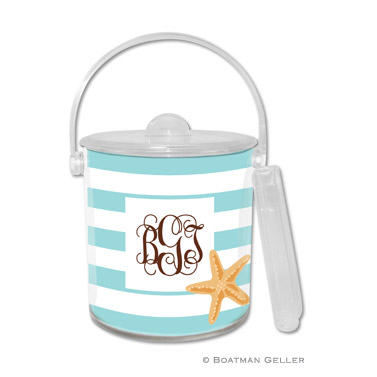 Lucite bucket with tongs. This chic double-walled acrylic ice bucket is a great party companion. Includes tongs and a personalized custom insert. 6.75 x 6 x 7. Hand-wash only. Extra inserts available (see ice bucket insert tab for ordering). Pattern and color shown as is. Custom monogram/personalization options available.