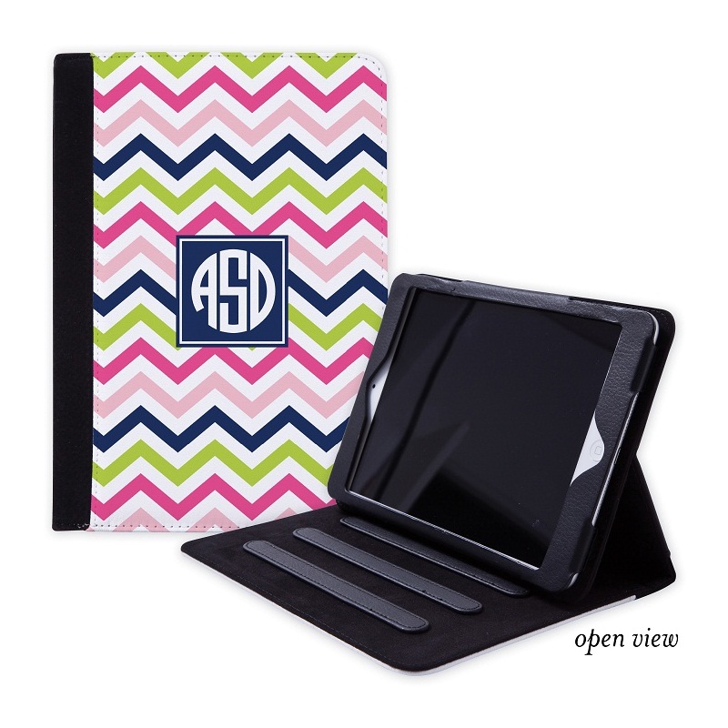 Show your style with Boatman Geller’s personalized iPad Folding Case for your mini. Add a monogram, name or personalize anyway you want. There are so many options to make it unique. It makes a great gift too! Shown in Chevron Pink, Navy & Lime. Choose from over 50 designs.