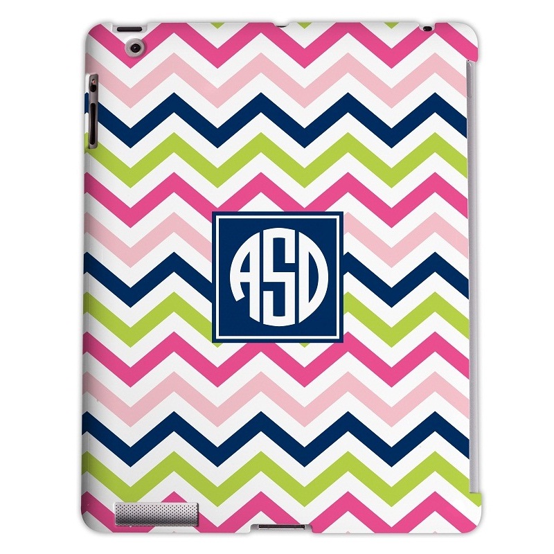 Show your style with Boatman Geller’s personalized iPad Case. Add a monogram, name or personalize anyway you want. There are so many options to make it unique. It makes a great gift too! Shown in Chevron Pink, Navy & Lime. Choose from over 50 designs. Made of strong, durable plastic, they simply snap on your device. Each case is custom designed with your initials and heat printed, so no chance of rubbing off or fading. This is NOT a sticker!