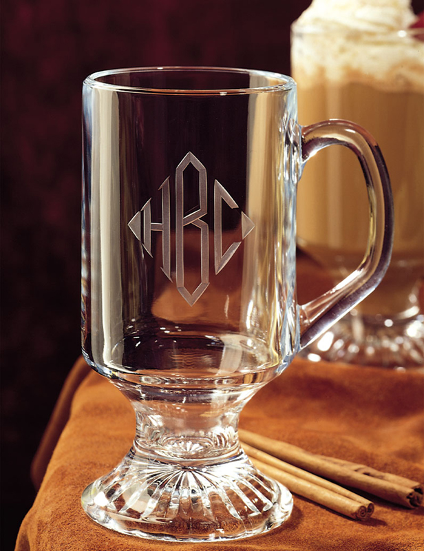 5.5″H x 2.75″W, 10oz. More than just an Irish coffee, this tempered mug is also a great way to enjoy gourmet coffees, herbal teas, or your toddy of choice. Add a bit of spice and a classy little monogram and you’re ready to relax in style. Durable and dishwasher safe.