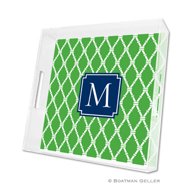 Our lucite trays are so stylish. Perfect for entertaining indoors or out. Available in 3 different sizes, all trays include one insert, extra inserts available to order. Large 11×17 – $104, Small 8.5×11 – $58, Square 12×12 – $95. Extra inserts available, see insert tab for ordering. Shown in kelly with navy accent.