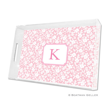 Our lucite trays are so stylish. Perfect for entertaining indoors or out. Available in 3 different sizes, all trays include one insert, extra inserts available to order. Large 11×17 – $104, Small 8.5×11 – $58, Square 12×12 – $95. Extra inserts available, see insert tab for ordering. Shown in petal with bubblegum accent and white pattern inset.