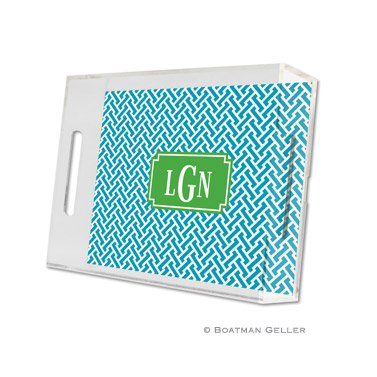 Our lucite trays are so stylish. Perfect for entertaining indoors or out. Available in 3 different sizes, all trays include one insert, extra inserts available to order. Large 11×17 – $104, Small 8.5×11 – $58, Square 12×12 – $95. Extra inserts available, see insert tab for ordering. Shown in turquoise with kelly accent.