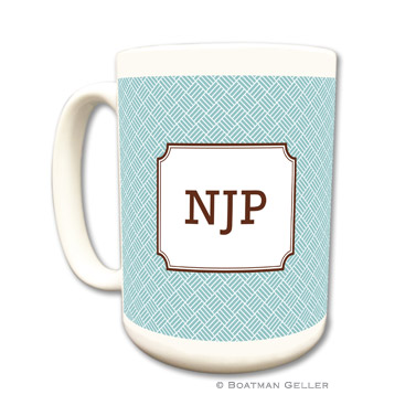 15 oz stylish ceramic mugs will perk up your morning. Also great for the office and your favorite co-worker. $22 each. Shown in slate with chocolate accent with white pattern inset.