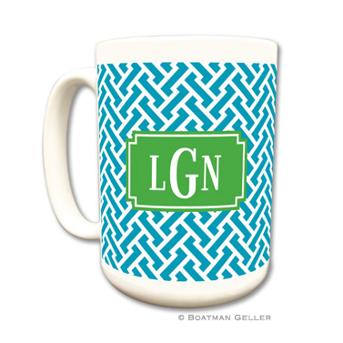 15 oz stylish ceramic mugs will perk up your morning. Also great for the office and your favorite co-worker. $22 each. Shown in turquoise with kelly accent.