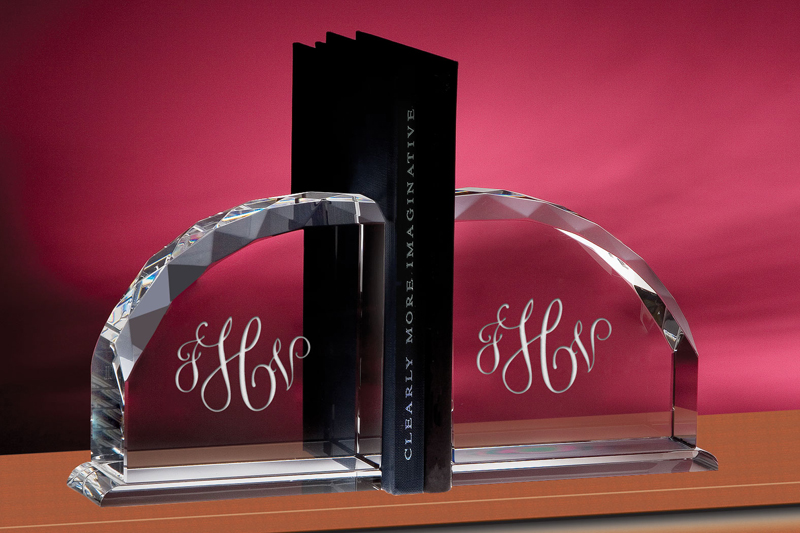 5.5″H x 5.5″W. Scores of facets bring prismatic colors and a touch of elegance to our Radii Bookends. Made of solid optic crystal, this set insures that your books will stay in place.