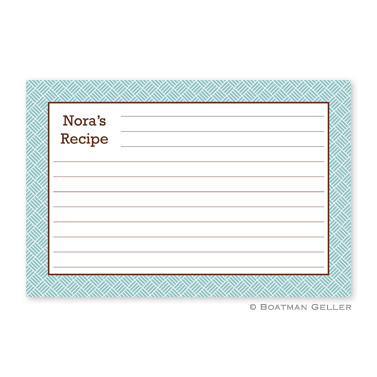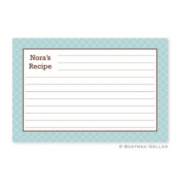 Share your favorite recipes with your friends and family on these personalized recipe cards. Each card has horizontal lines on both the front and back in the same ink color as your text allowing you to keep your handwriting neat. Available in pack of 24 count – $35 or 48 count – $55. Shown in slate with chocolate accent.