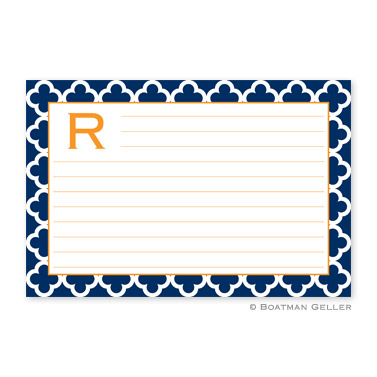 Share your favorite recipes with your friends and family on these personalized recipe cards. Each card has horizontal lines on both the front and back in the same ink color as your text allowing you to keep your handwriting neat. Available in pack of 24 count – $35 or 48 count – $55. Shown in navy with tangerine accent.