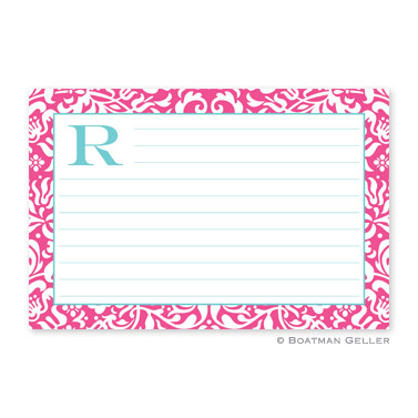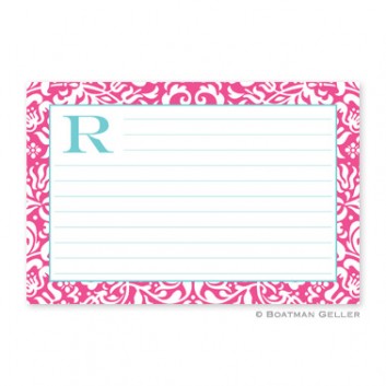 Share your favorite recipes with your friends and family on these personalized recipe cards. Each card has horizontal lines on both the front and back in the same ink color as your text allowing you to keep your handwriting neat. Available in pack of 24 count – $35 or 48 count – $55. Shown in raspberry with teal accent..