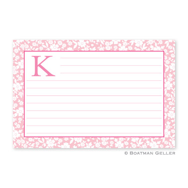Share your favorite recipes with your friends and family on these personalized recipe cards. Each card has horizontal lines on both the front and back in the same ink color as your text allowing you to keep your handwriting neat. Available in pack of 24 count – $35 or 48 count – $55. Shown in petal with bubblegum accent..