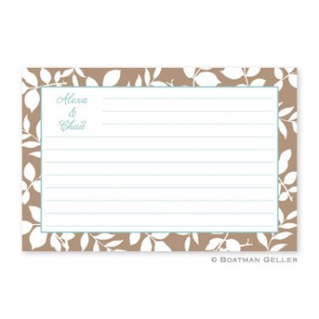Share your favorite recipes with your friends and family on these personalized recipe cards. Each card has horizontal lines on both the front and back in the same ink color as your text allowing you to keep your handwriting neat. Available in pack of 24 count – $35 or 48 count – $55. Shown in mocha with slate accent.