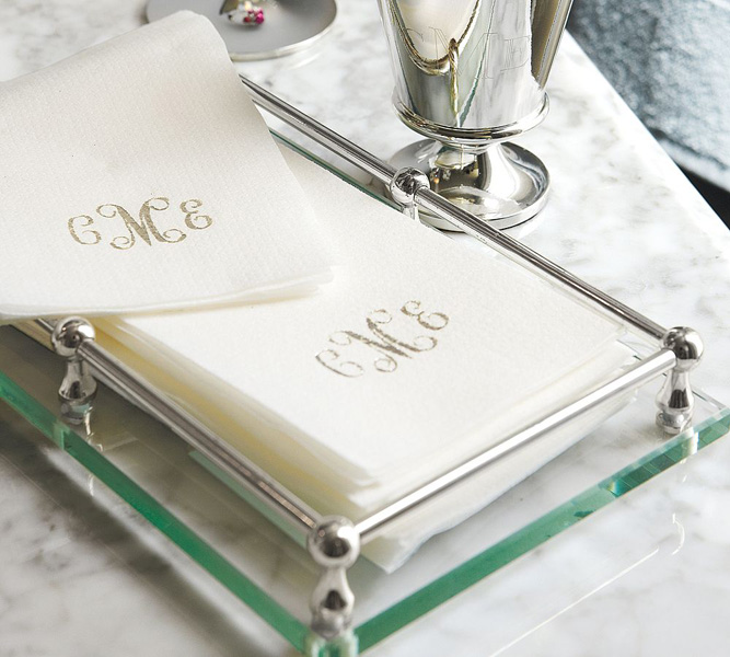 Our air-laid non-woven, disposable towels are strong yet very soft and absorbent. Our signature linen-like finish personalized to your desire create a timeless elegance and sophisticated touch to your home, event or business.INITIAL : A single letter, perfect for all occasions. Design your gift specific to the recipient’s preferences. Enter desired initial then select font type and towel embossing.