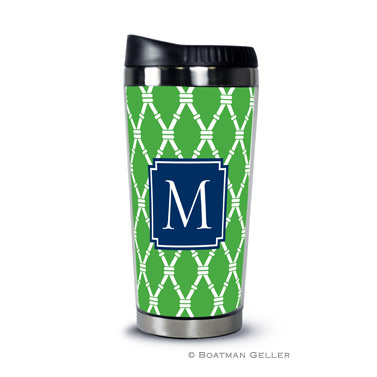 Our 18 oz. Travel Tumbles are the perfect campanions for perfect mornings. Insulated mug keeps beverages hot, hand wash only. Shown in kelly with navy accent.