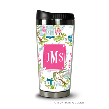Our 18 oz. Travel Tumbles are the perfect campanions for perfect mornings. Insulated mug keeps beverages hot, hand wash only. Pattern and color shown as is. Custom monogram/personalization options available.