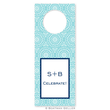 Wrap your package in style with a custom wine tag. Slip over the bottle and your good to go. Shown in teal with navy accent .