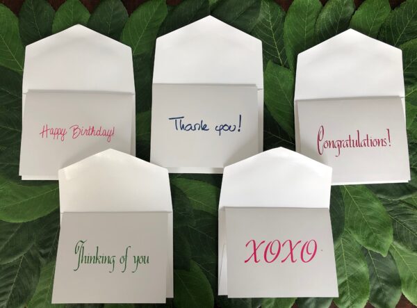 Two of each design on white folded 110 lb paper stock.