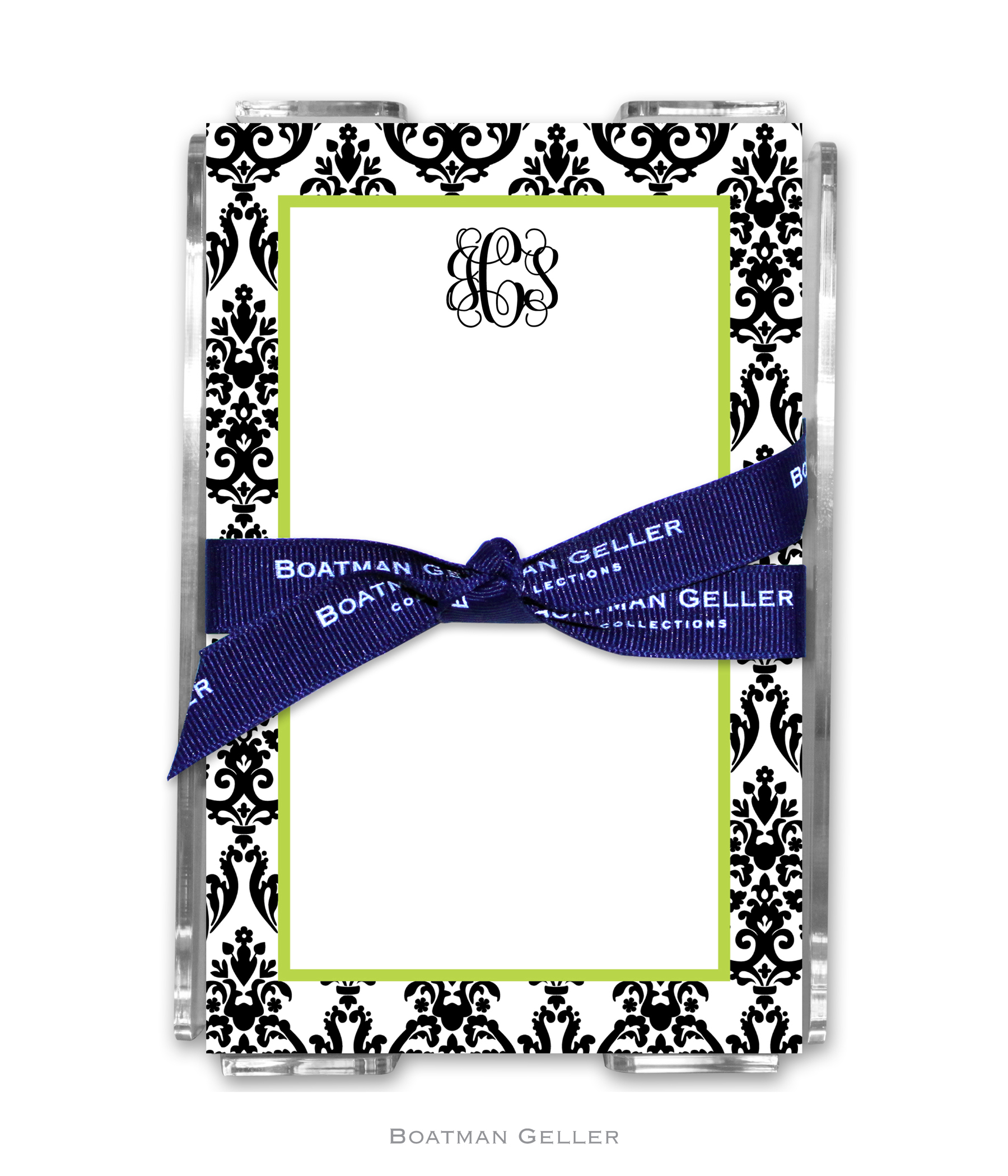 Choose your style with these personalized note sheets, 150 loose sheets nestled in a stylish acrylic holder. Pick your favorite design and add a monogram, name or personalization. All note pads are 4.125 x 6.4375