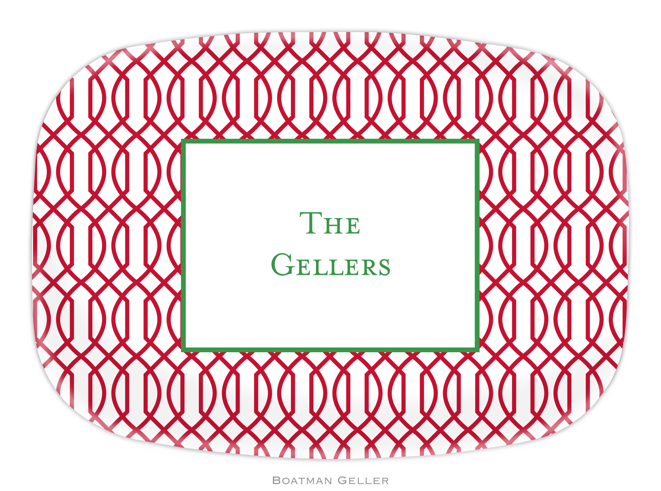 Festive and personalized, these 14″ oval melamine platters are great for entertaining and gift giving too. Dishwasher safe. Do not microwave. $42/each