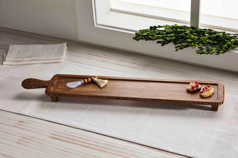 Board measures 5 1/2″ x 31″ Board is made of mango wood We recommend hand washing this set, do not soak This board can pair well with any of the light up sitters.