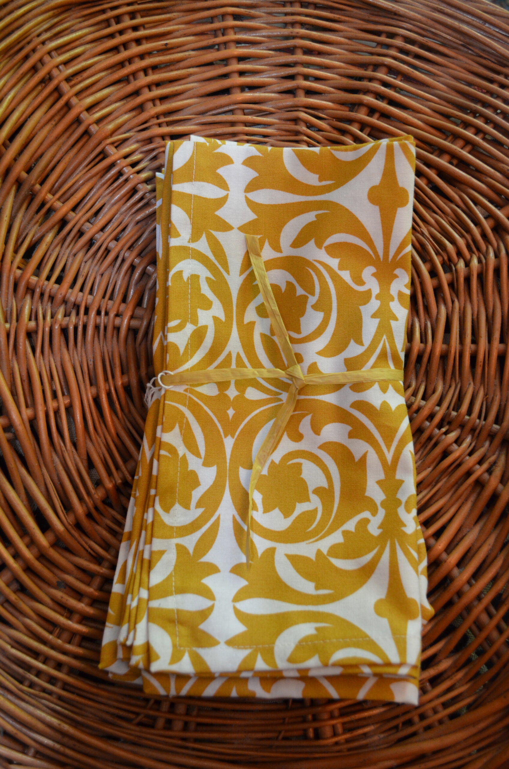 Garden Gate Ochre Dinner Napkins – Our generously-sized napkin looks beautiful on any table and stands up wash after wash. Made to be used everyday, but elegant enough for special events. – 20″ x 20″ Set of four