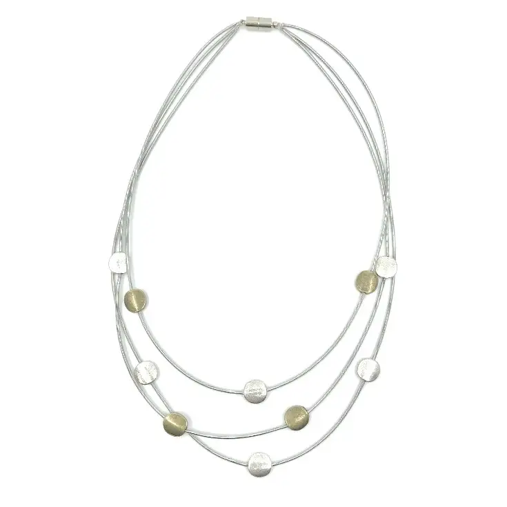 3 Strand Tiered Necklace with Silver and Gold Discs