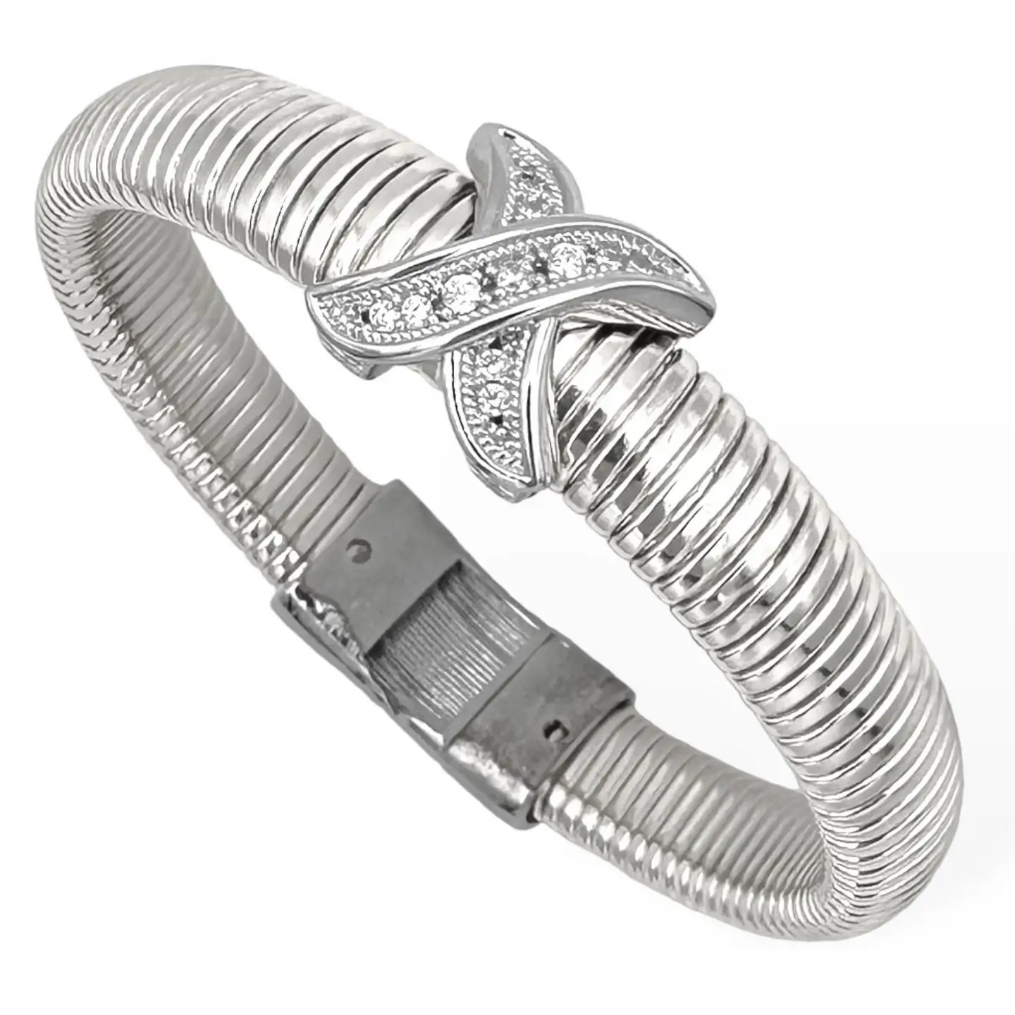Lovely chunky cuff Available in three colours Full cut crystal x station Hinged for easy wear and removal