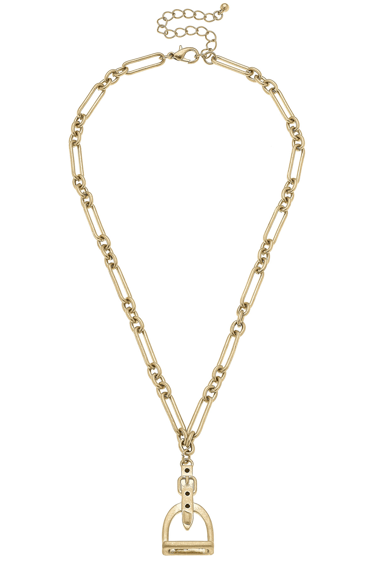 Add a hint of equestrian charm to your wardrobe with the Hunter Stirrup Necklace. This piece features a sleek stirrup pendant, making it an understated yet stylish addition to any outfit.