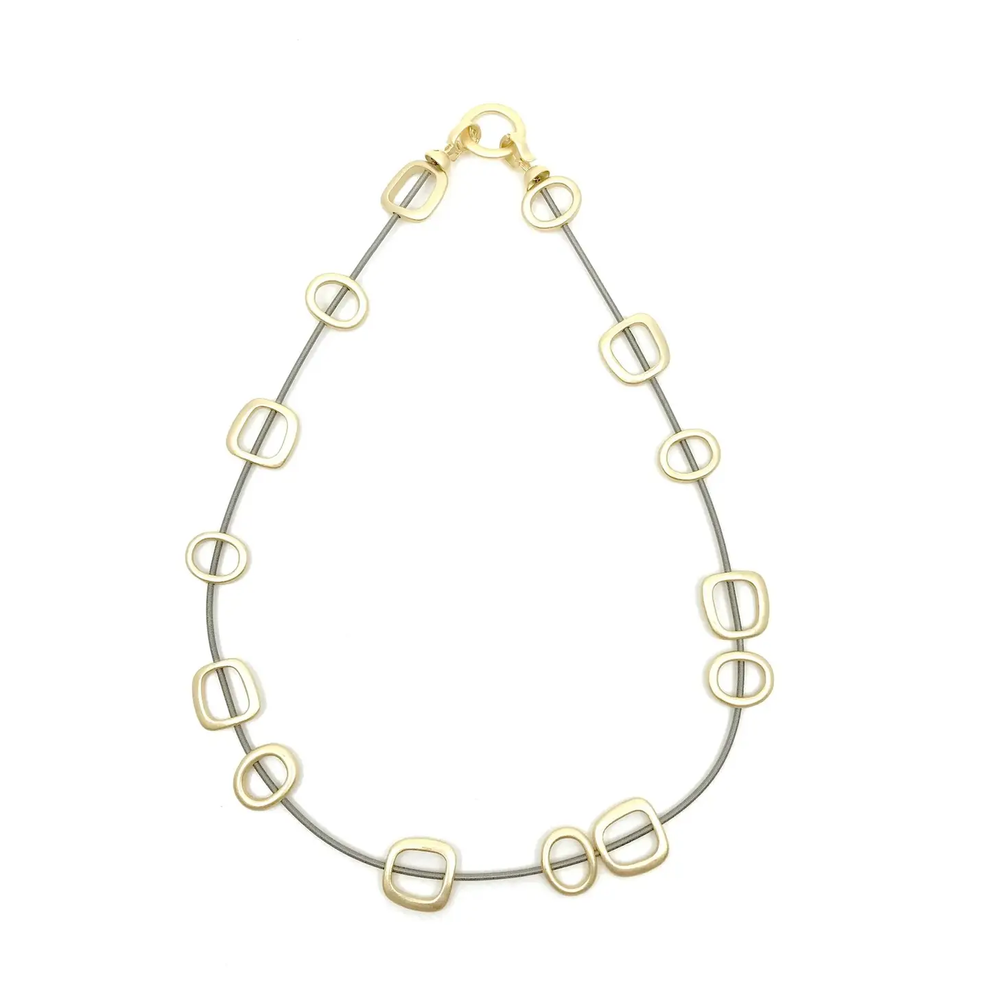 Short Wire Necklace W. Gold Squares & Metal Clasp