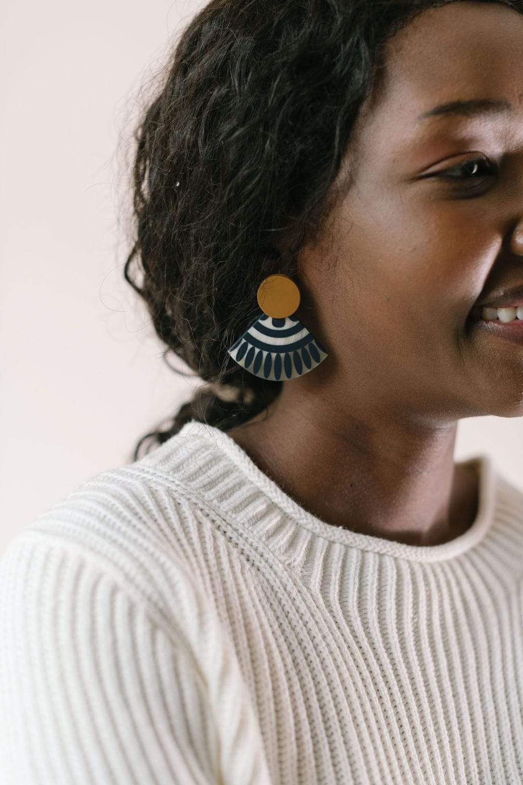 Matte Navy, Matte Terracotta, Lightweight Buffalo horn, Stainless Steel ear post