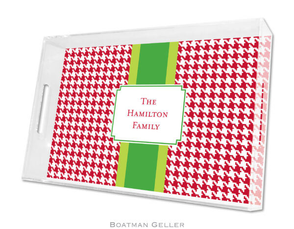 Our lucite trays are so stylish. Perfect for holiday entertaining. Available in 3 different sizes (shown in large).. Large 11×17 – $104, Small 8.5×11 – $58, Square 12×12 – $95. Pattern and color shown as is. Custom monogram/personalization options available.
