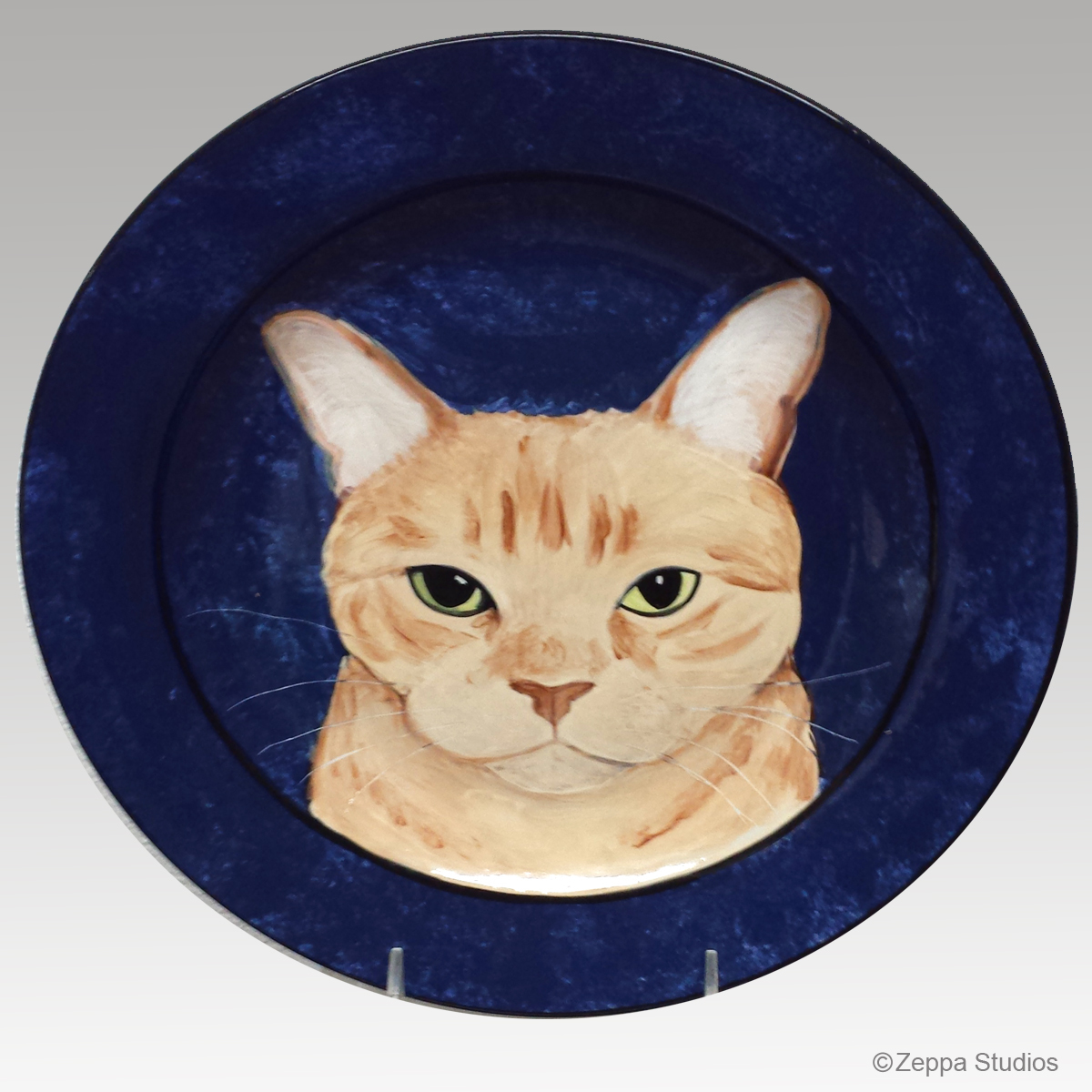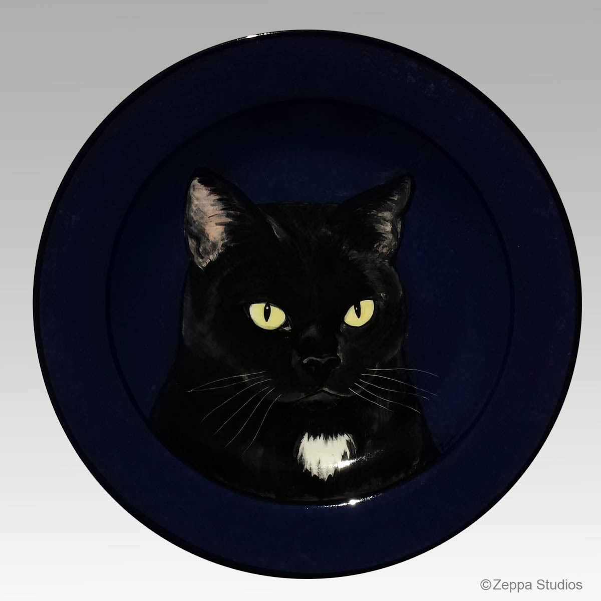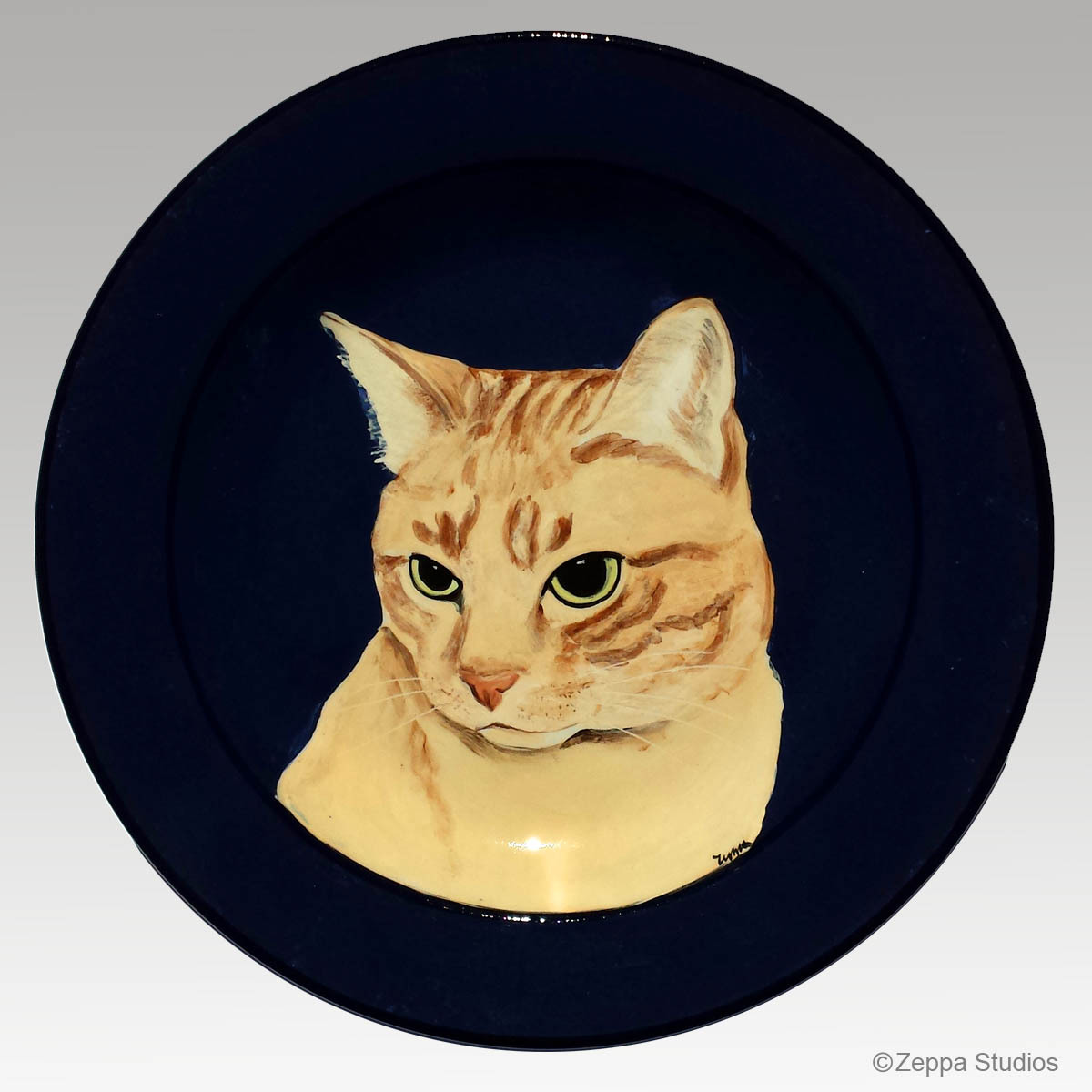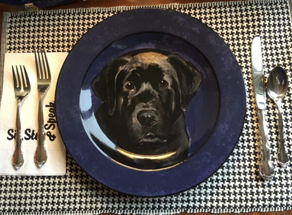This style features a single pet’s portrait framed by a matching solid rim accented by thin black trim on the edges. Use them for decorative accents or as chargers on the table. They measure 11 inches in diameter about 1 1/2 inches being the rim edge. Hand wash for best results.