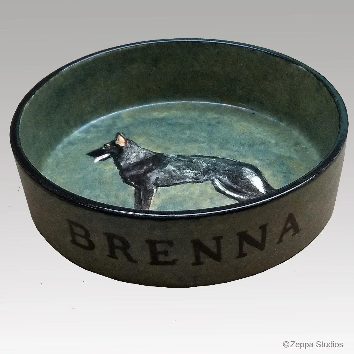 To order: choose the size bowl, the color of the background glaze, email full body standing photo of your pet (we can fudge a little if you don’t have the perfect shot…but a head shot or curled up sleeping pose is not going to cut it) and enter the pet’s name (or a phrase) if you want it personalized.