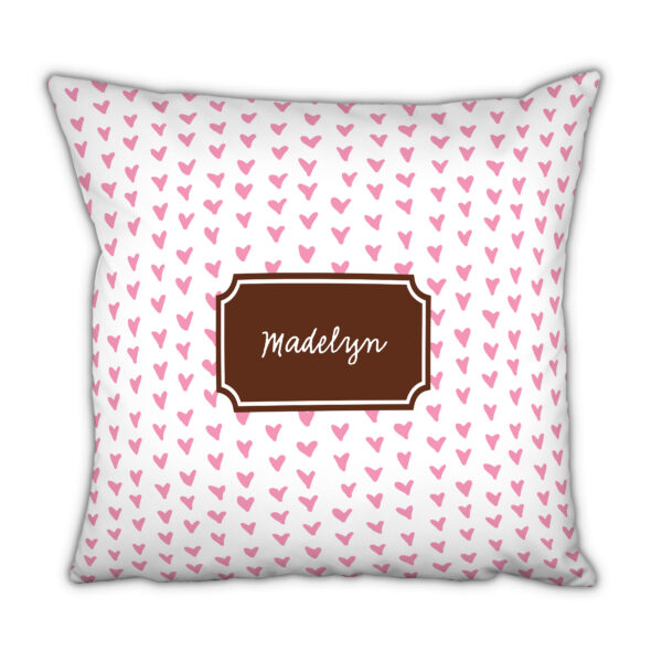 This pillow is (Pattern color) P25 + (Panel shape) si06 + (Accent color)+A14 Typestyle:Emma Script