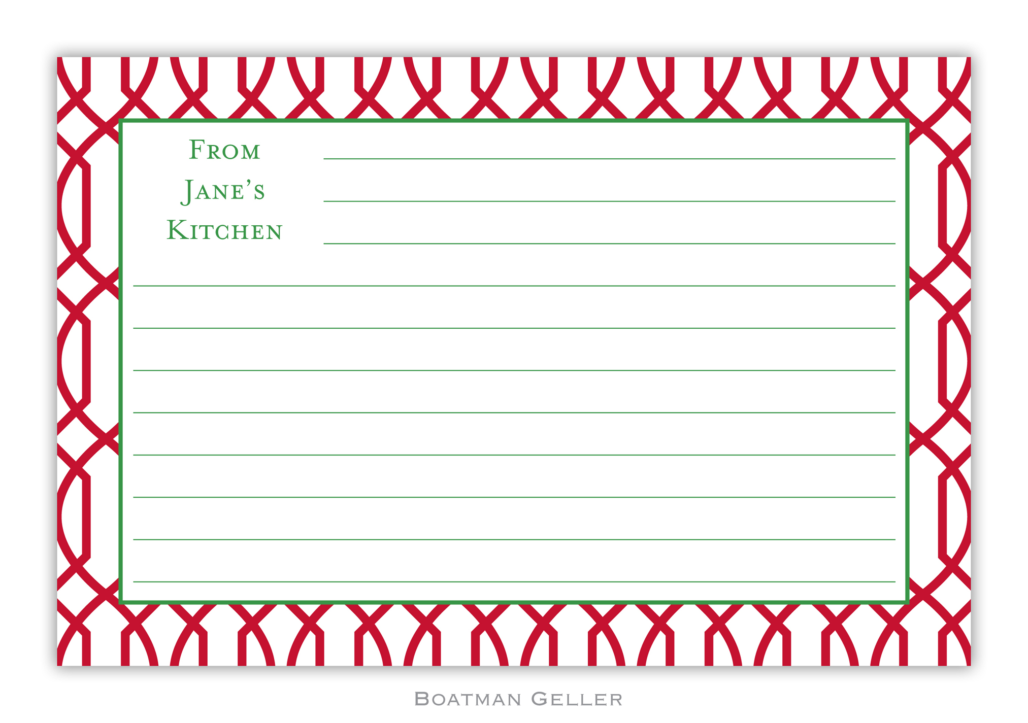 Share your favorite recipes with your friends and family on these personalized holiday recipe cards. Each card has horizontal lines on both the front and back in the same ink color as your text allowing you to keep your handwriting neat. Available in pack of 24 count – $35 or 48 count – $55.