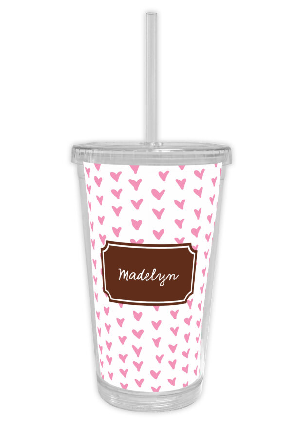 Create-Your-Own Custom Beverage Tumbler. Choose the pattern color, inset shape, accent/personalization color, and font.